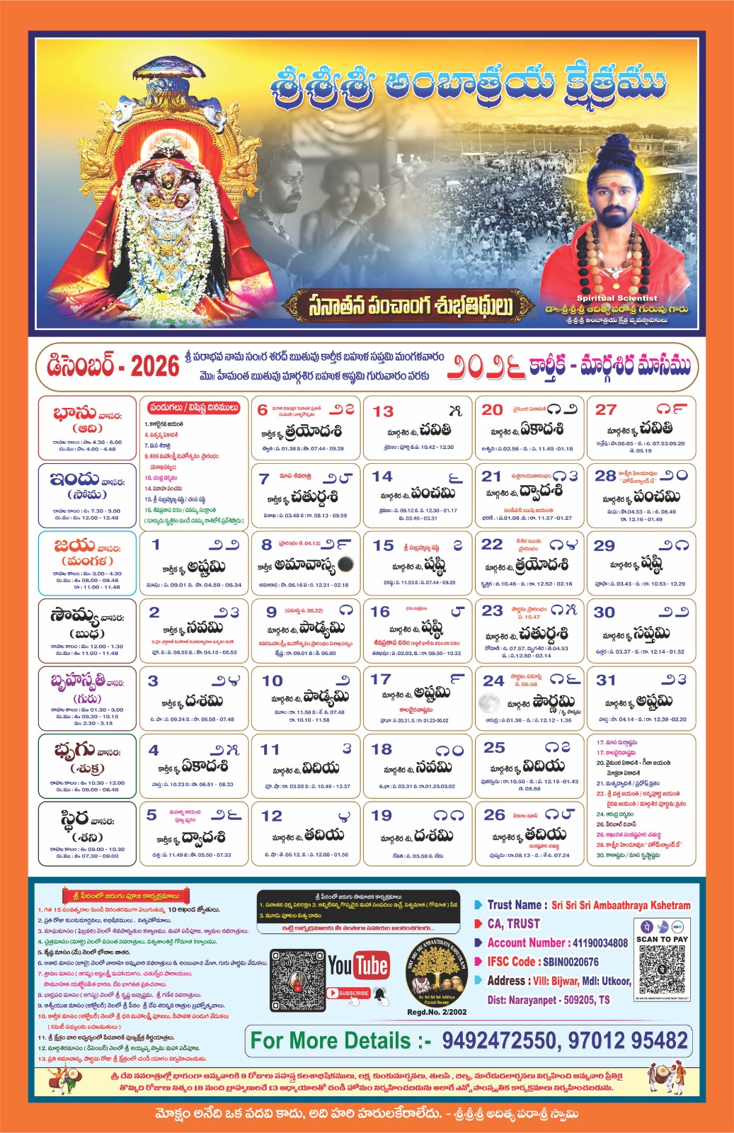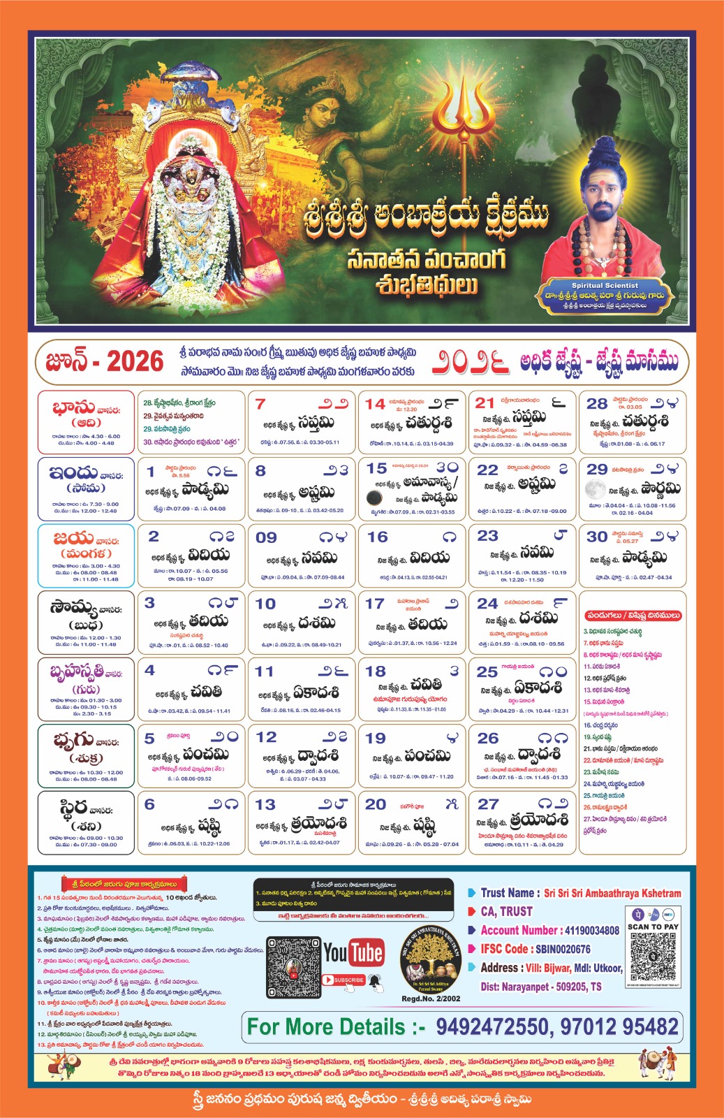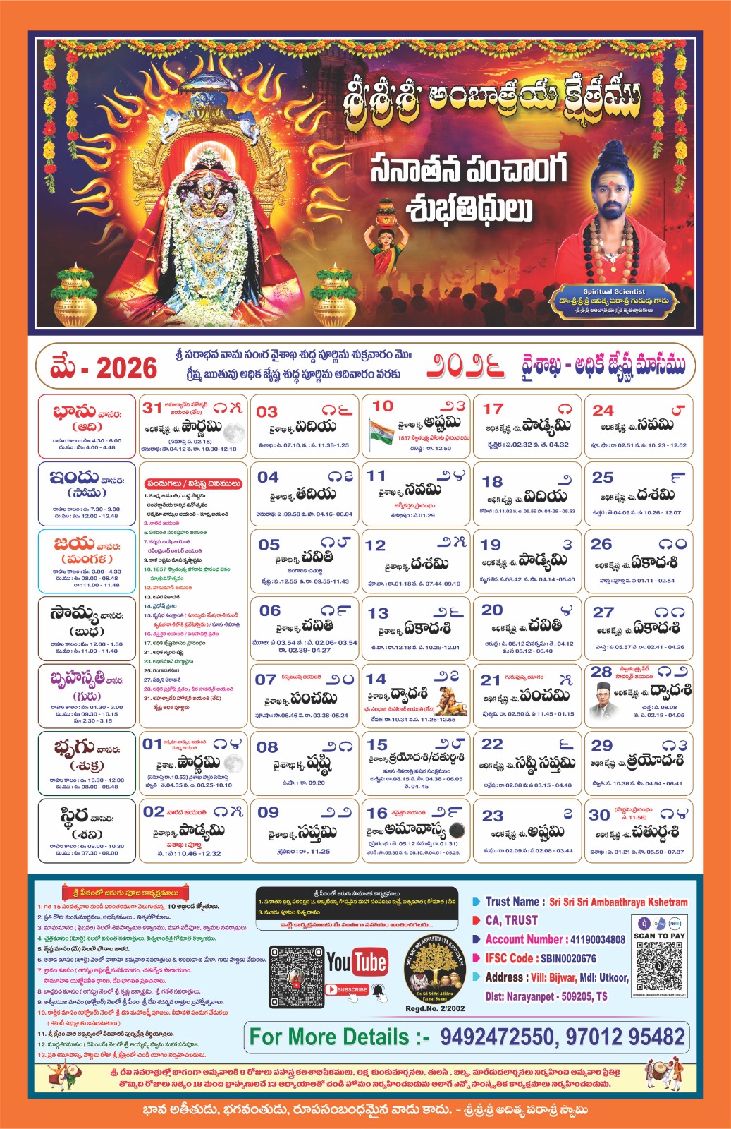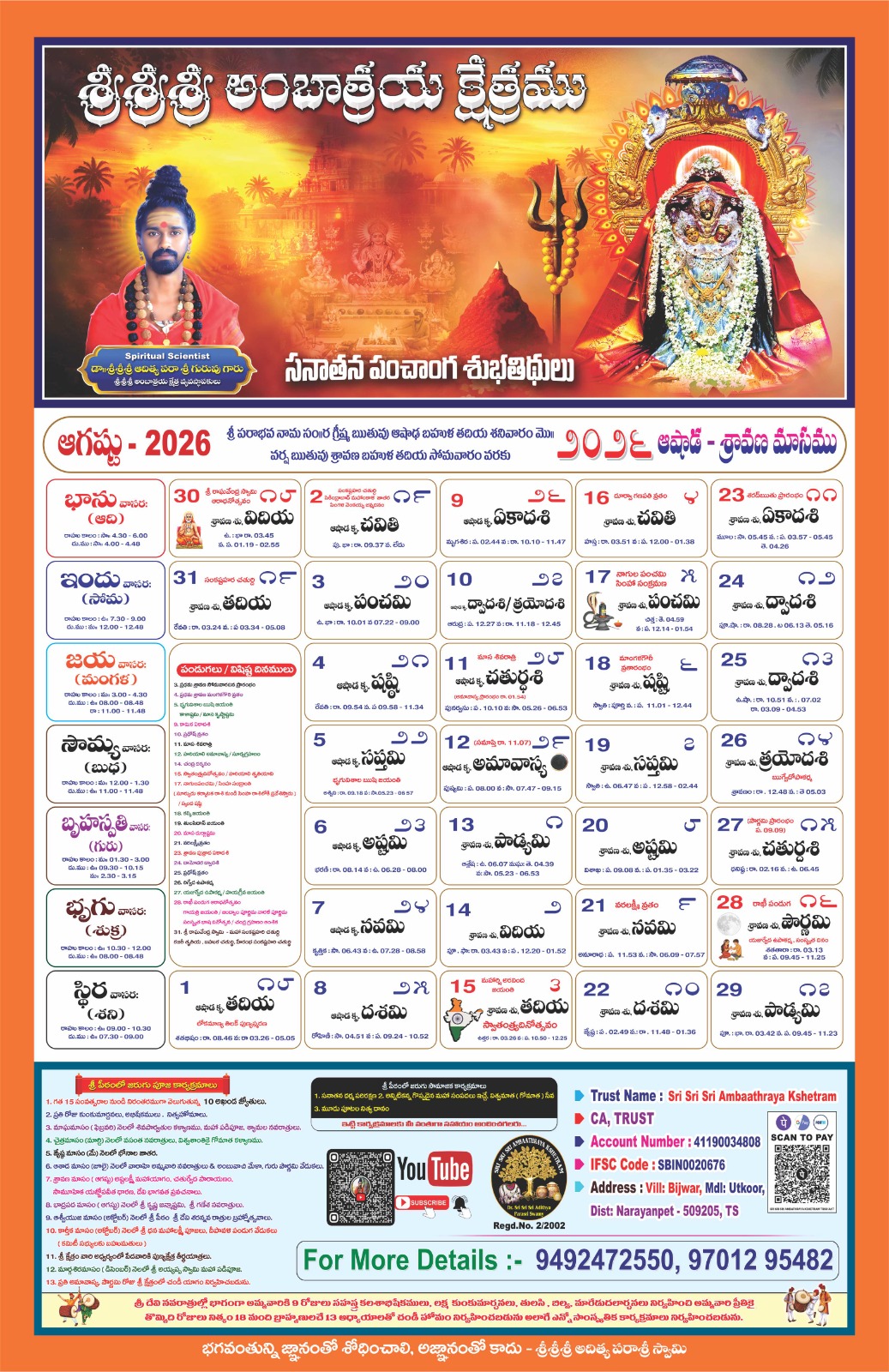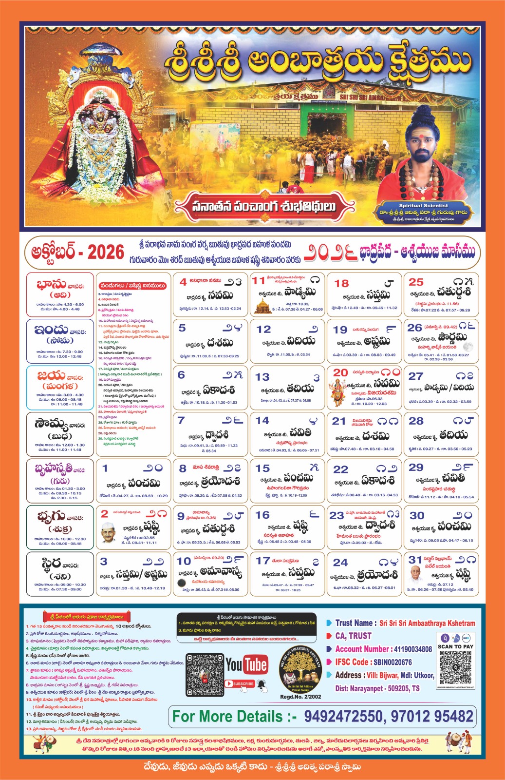 Swamiji encourages all devotees to visit the temple and offer poojas and offerings to Jaganmatha (Maa to the Universe) to receive Her divine grace. The divine power resides with Jaganmatha, and She bestows blessings upon all who seek Her with devotion. With thousands of devotees visiting daily, it may not be possible to meet Swamiji personally. So Swamiji urges everyone to immerse themselves in the divine presence of Jaganmatha, Who is vibrant in the Kshetram.