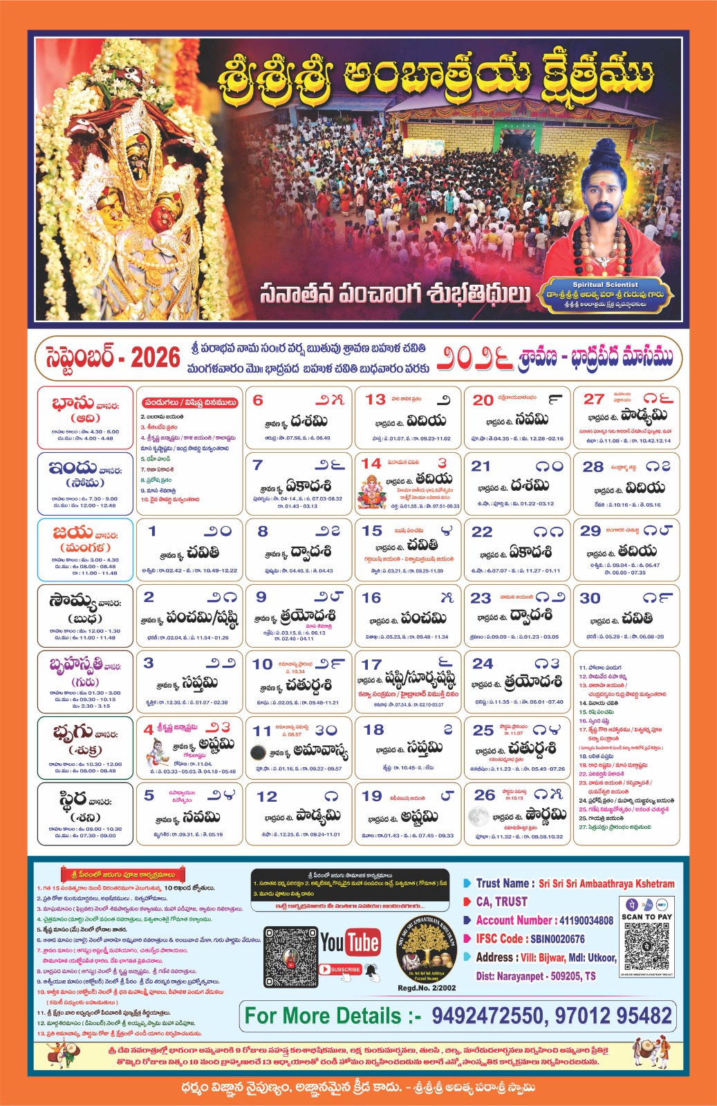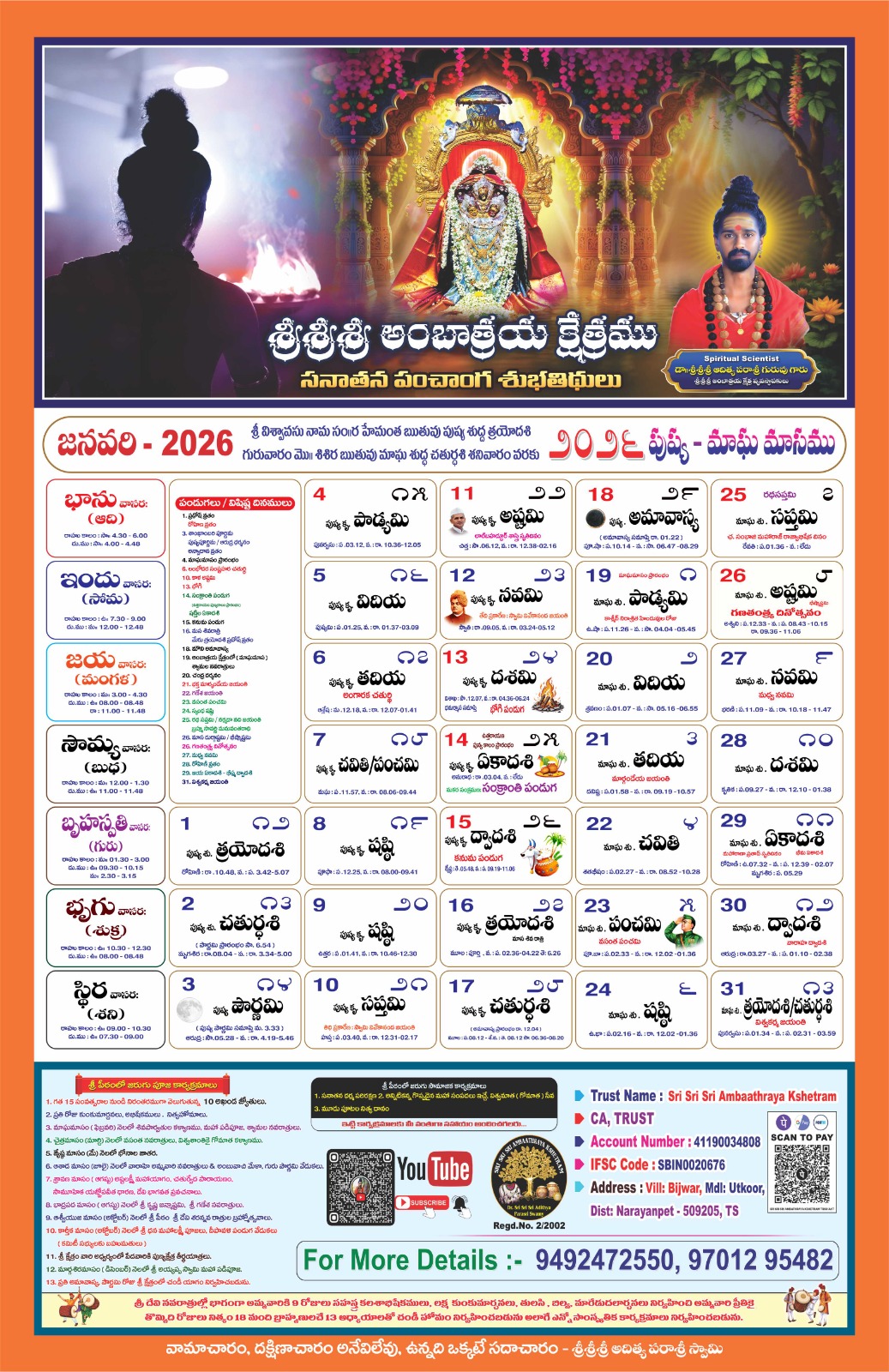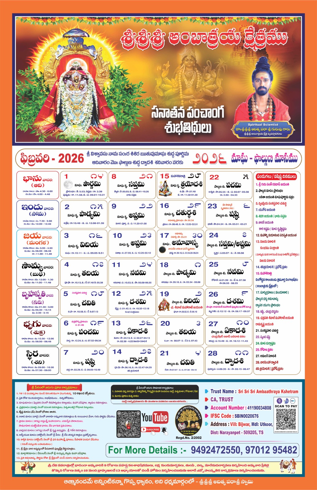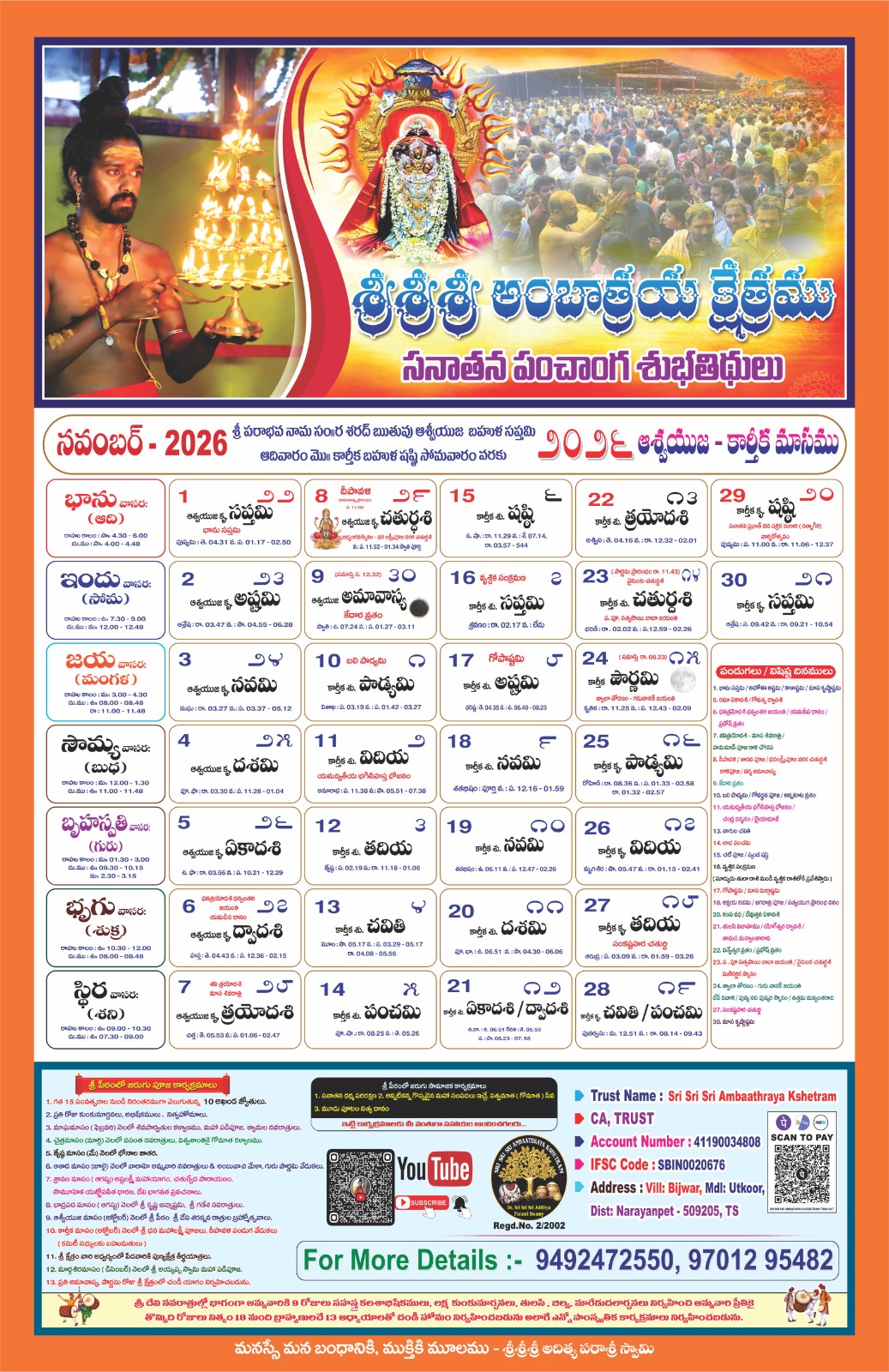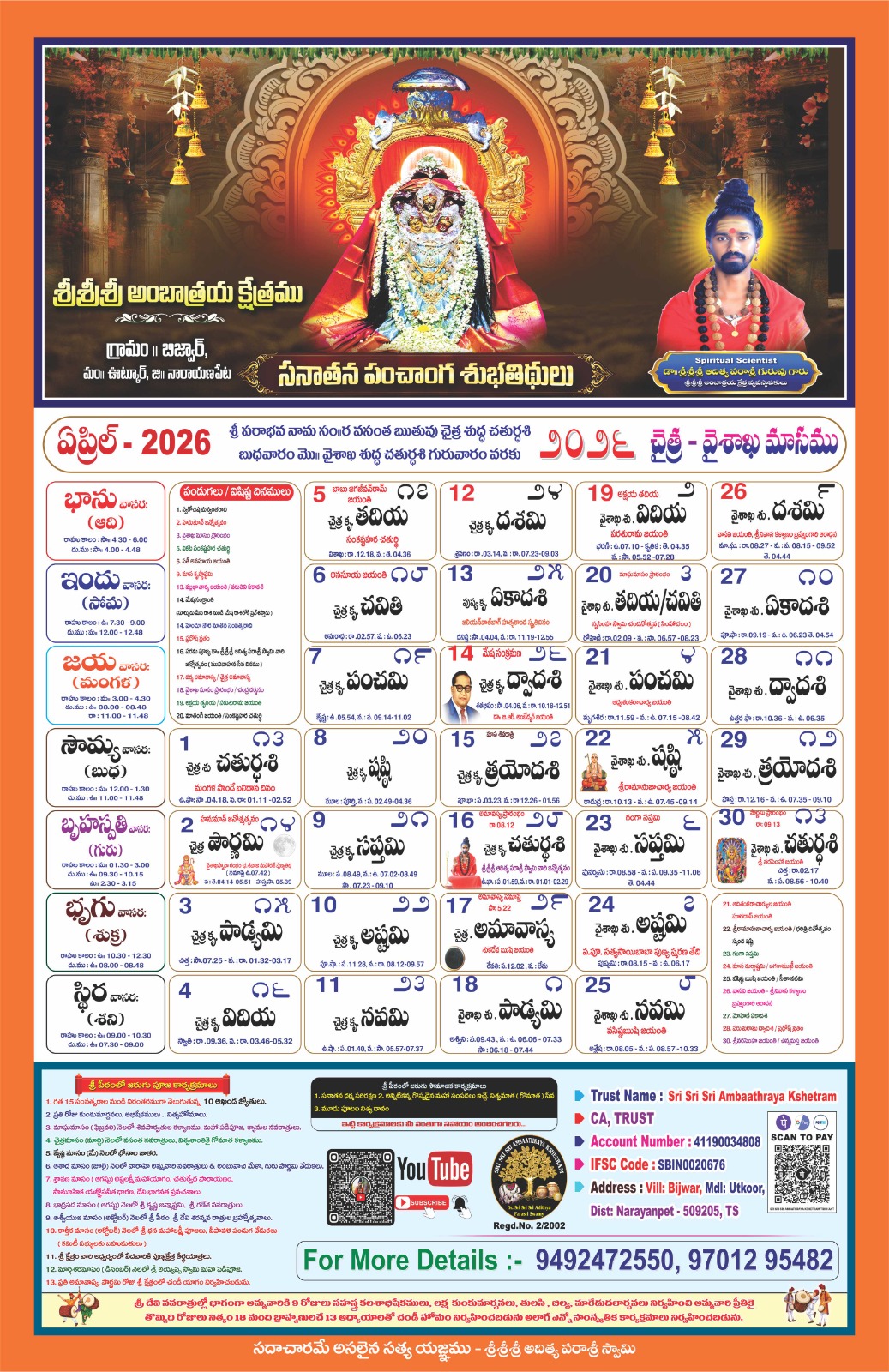 Swamiji encourages all devotees to visit the temple and offer poojas and offerings to Jaganmatha (Maa to the Universe) to receive Her divine grace. The divine power resides with Jaganmatha, and She bestows blessings upon all who seek Her with devotion. With thousands of devotees visiting daily, it may not be possible to meet Swamiji personally. So Swamiji urges everyone to immerse themselves in the divine presence of Jaganmatha, Who is vibrant in the Kshetram.